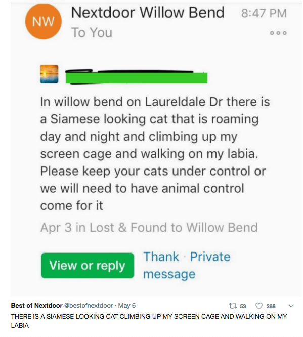 With the nextdoor app posts like these make it a little easier to spot which people on the block to steer clear of. Other people on that post came to my defense. Everyone has that weird neighbor unless they are that weird neighbor.